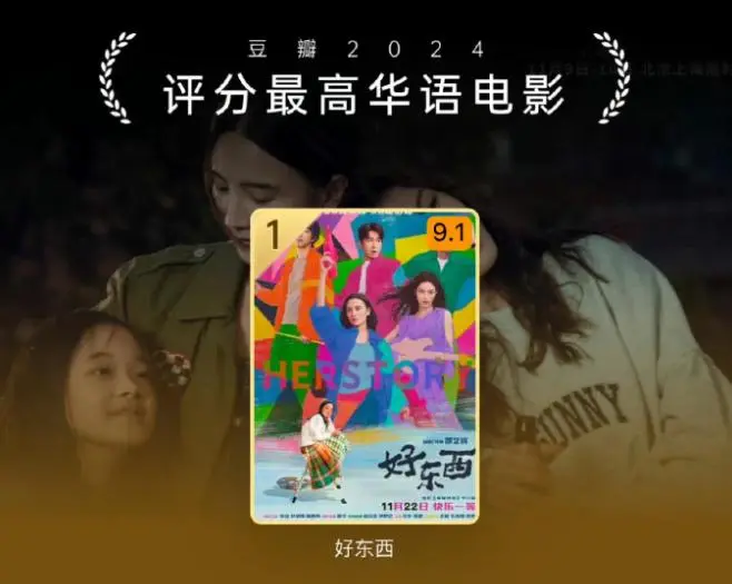 在豆瓣2024电影评分榜单中,《好东西》以9.1分排在第一名,这部电影是内娱今年评分唯一破9的电影,从这个评分上看,我们就可以知道,这部电影的质量有多高。